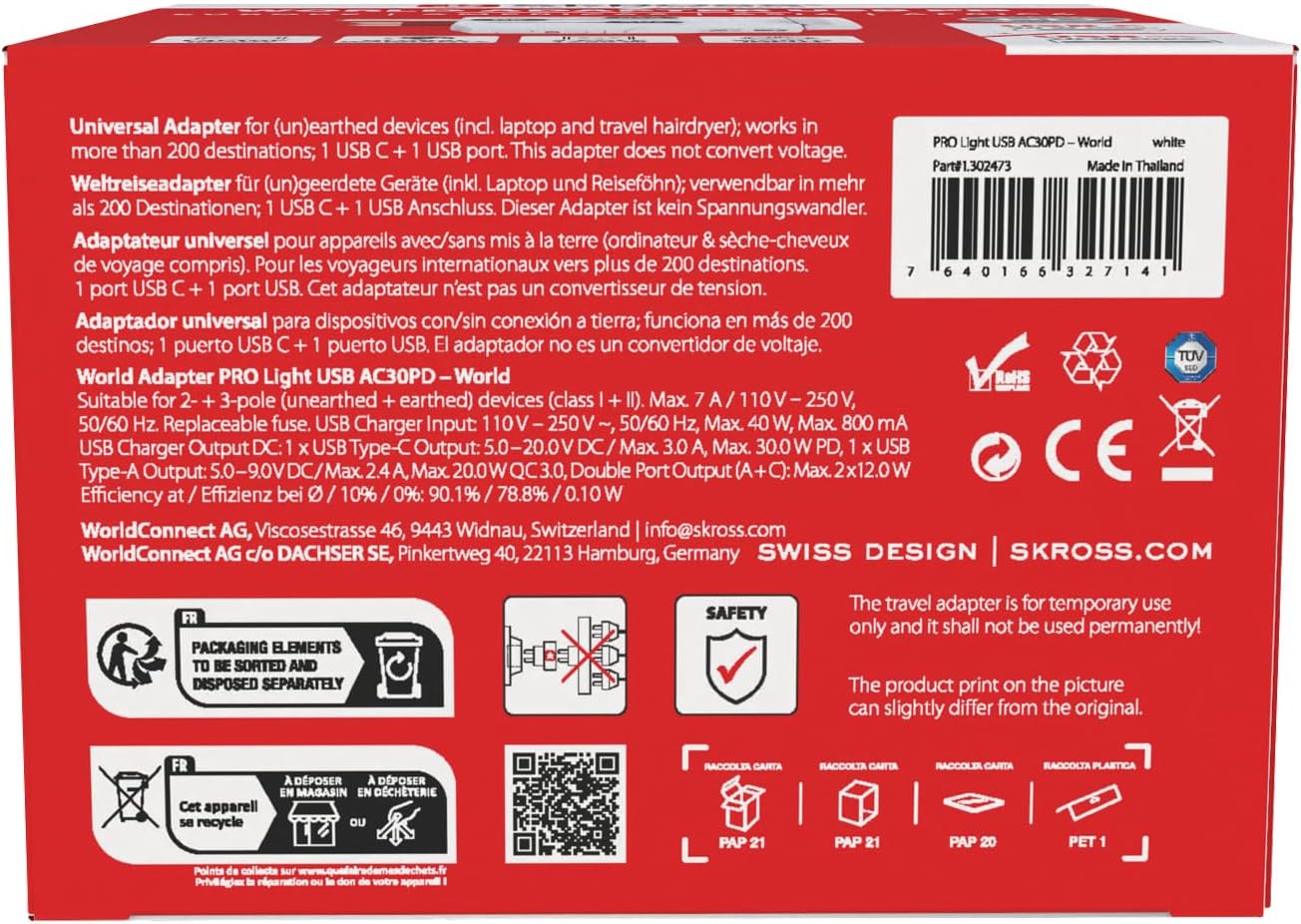 Skross 1302473 Pro Light Usb Ac30W Pd World