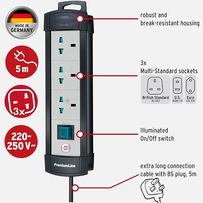 BRENNENSTUHL 1153253329 ECOLOR 5 WAY SOCKET WITH FUSE 3M