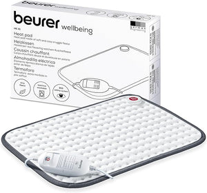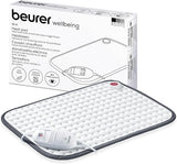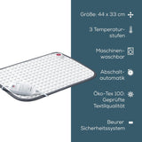 Beurer HK 41 Heat Pad, Super Fluffy Surface, 3 Temperature Levels, Auto Shut-off, Machine Washable, Made in Europe, White/Grey