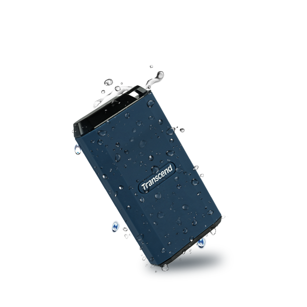 Transcend's matchbox-sized ESD410C features an incredibly rugged and water-resistant construction. An integrated lanyard hole allows for a wide range of attachment options. ESD410C's IPX5* rating and MIL-STD-810G US military drop-test compliance means that you can rest assured that your data is fully protected against the elements, even enduring a 3-meter drop!**