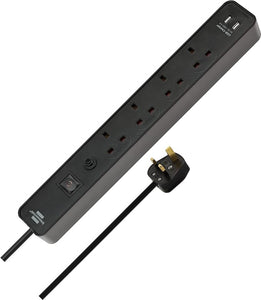 Ecolor 4-gang extension lead with two USB slots for fast charging and with 3m cable impresses with its quality and safety in all areas. The extension socket 4-way is perfect for household applications, due to integrated extra protection against contact. The 4-gang extension is stylish, elegant and timeless designed .The casing consists of highly break-proof, polished polycarbonate. The power strip has the following properties too: