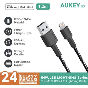 Aukey CB-BAL3 USB A-Lightning Nylon Braided MFI Cable - 1.2m- Black
