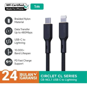 Aukey CB-NCL1 Nylon Braided USB C to Lightning Cable 1m - Black