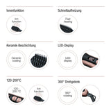 Straighten your hair in just a single brushstroke the heated hairbrush gives you sleek and shiny hair with its integrated ion function. The ceramic coating of the hair straightening brush ensures that your hair is perfectly protected.