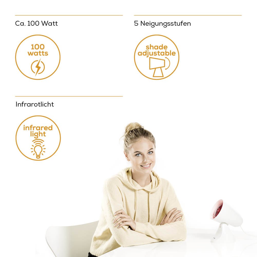 This infrared lamp provides you with soothing heat for colds and muscle tension. You can find the right angle for you with 5 adjustable inclinations.