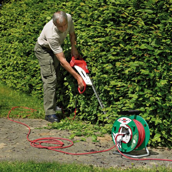 Garant Brennenstuhl outdoor cable reel with 25m extension cable impresses with quality and safety in all areas. Its thermal cut-out and safety indicator protect against overheating. It's not just ideal for mobile working outdoors in the garden, but has the following properties too: