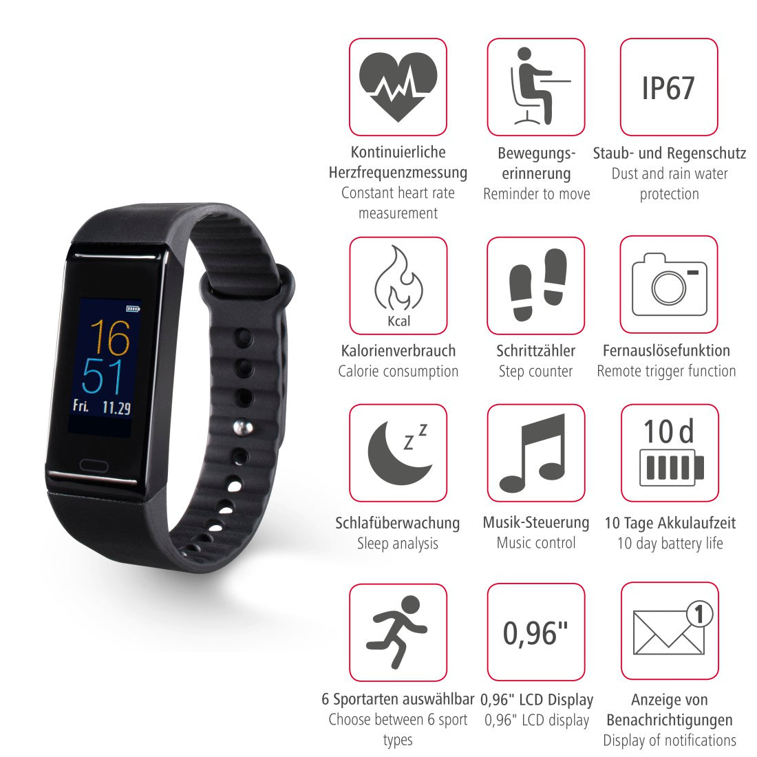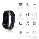 - Whether it be rain or beach: thanks to the IP67 protection class, the fitness tracker is suitable for activities on water as well as in dusty environments