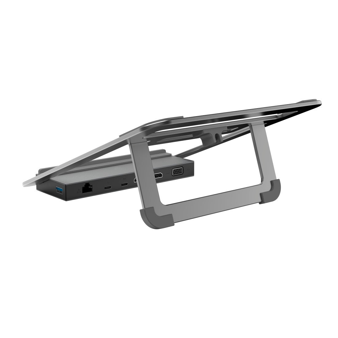 Angled configuration allows convenient position and comfortable working at the desk or on the move