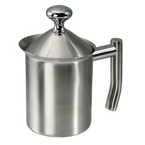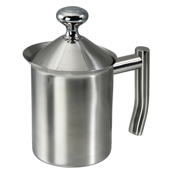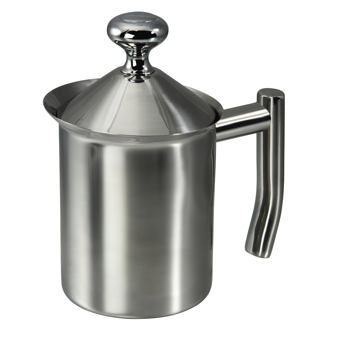 - Jug with a lid and a handle (polished stainless steel) as well as with a plastic frother