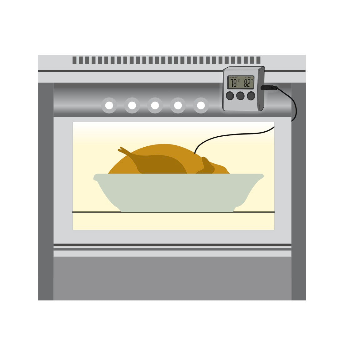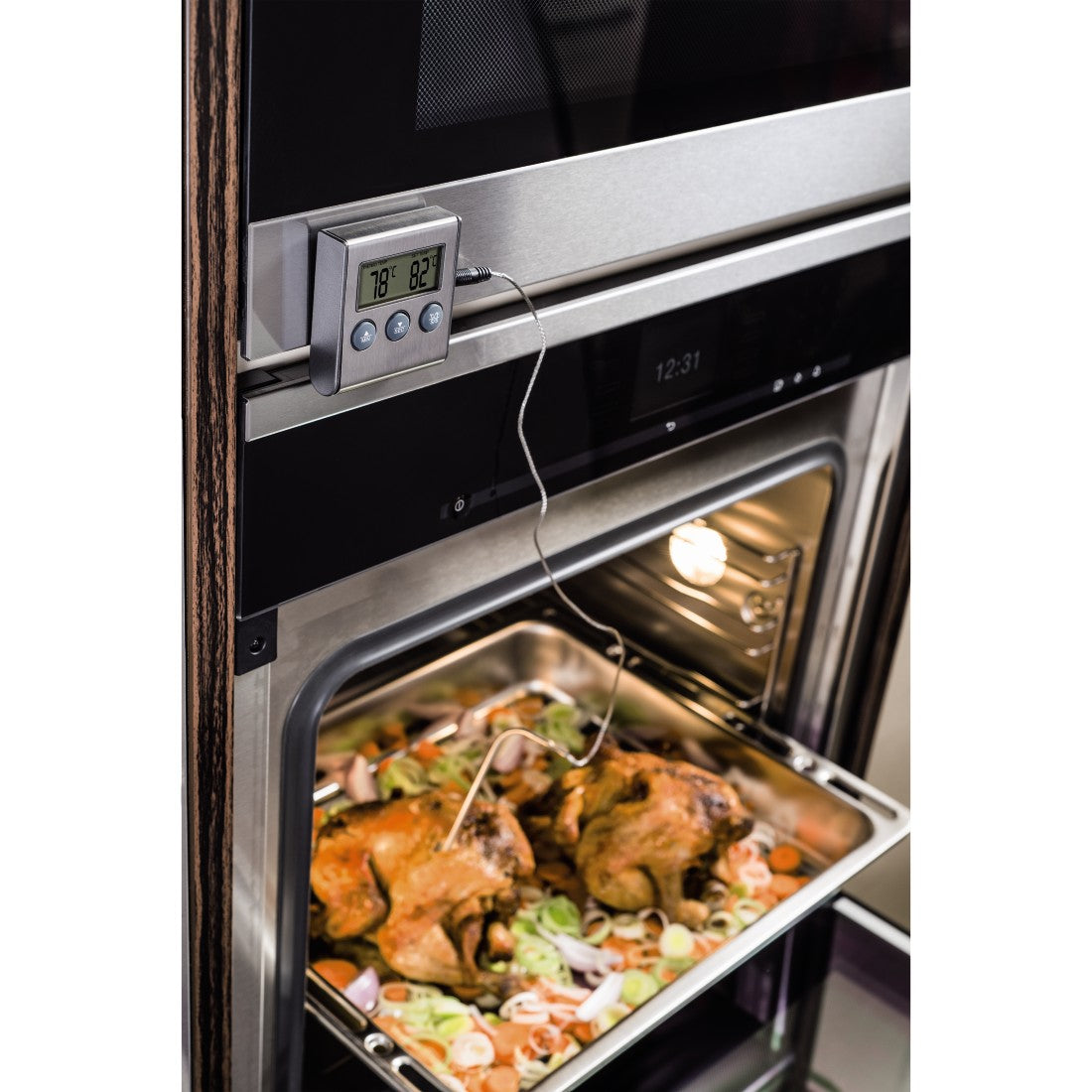 - Digital oven thermometer for controlling the core temperature of food during cooking, roasting and baking