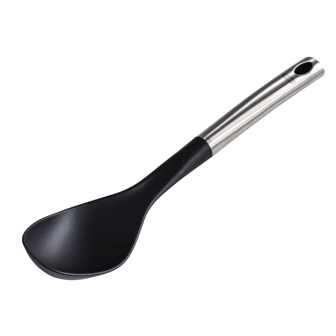 - Handy eyelet for hanging on kitchen rails, keeping the serving spoon handy at all times